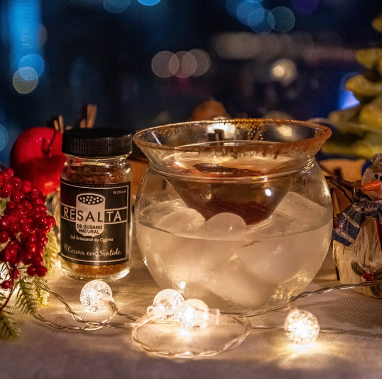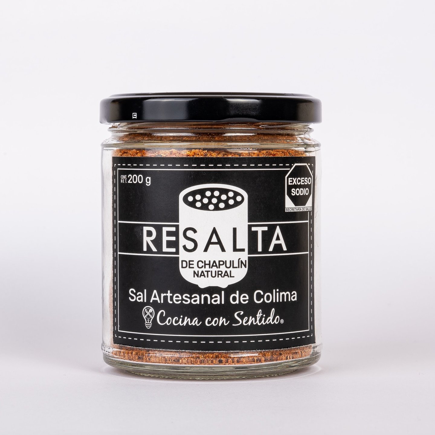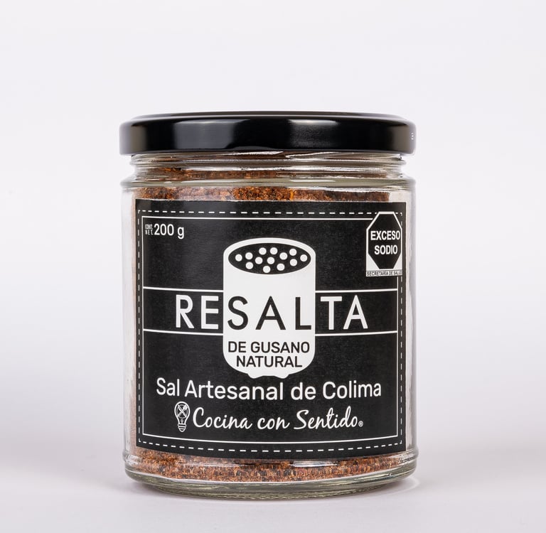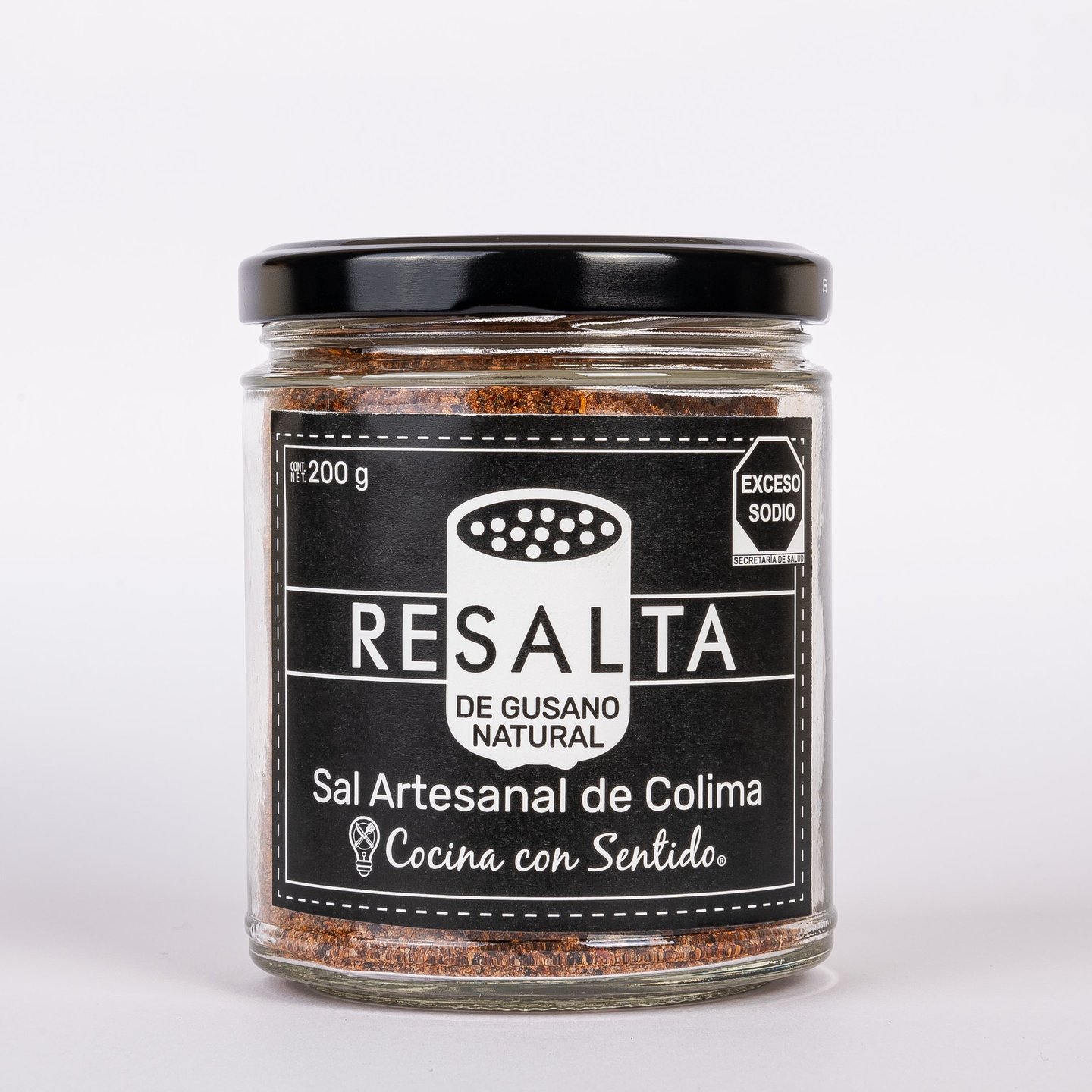 100% natural; elaborada a base de nuestra sal ahumada con la combinación perfecta de chiles, especias y chinicuiles cuidadosamente deshidratados, reSALta tu mezcal y tu cocina. NO contiene saborizantes artificiales.