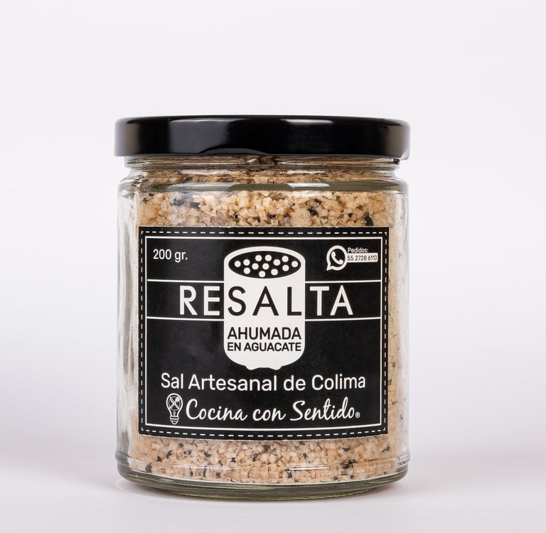 Sal de Colima artesanal ahumada en leña de aguacate con un pequeño toque de sal negra. El sazonador que reSALta tu cocina.
