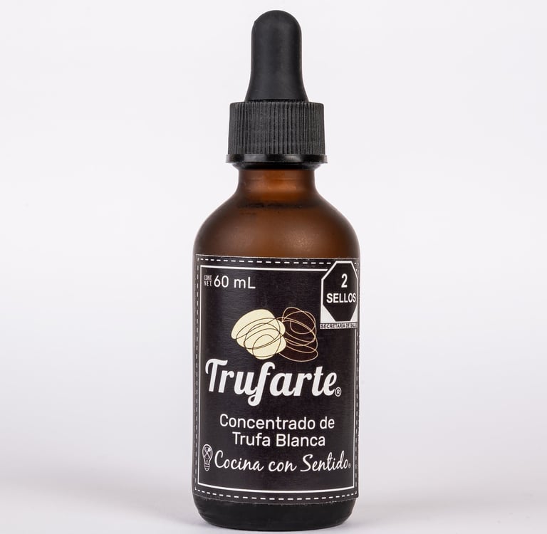 Elaborado con esencia natural de trufa, es 16 veces más potente que el aceite trufado convencional. Es una presentación diseñada especialmente para cocinar con poca grasa, integrar a recetas ya conocidas, o preparar productos trufados (como mayonesas, mantequilla, brownies, miel, etc.) sin la necesidad de agregar excesivas cantidades de aceite ya que unas pocas gotas de nuestro producto son suficientes para crear exquisitos platillos trufados.