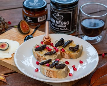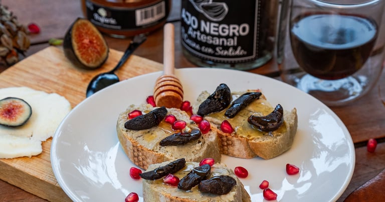 Tapa de Foie Gras Vegano, Ajo Negro y Miel Líquida