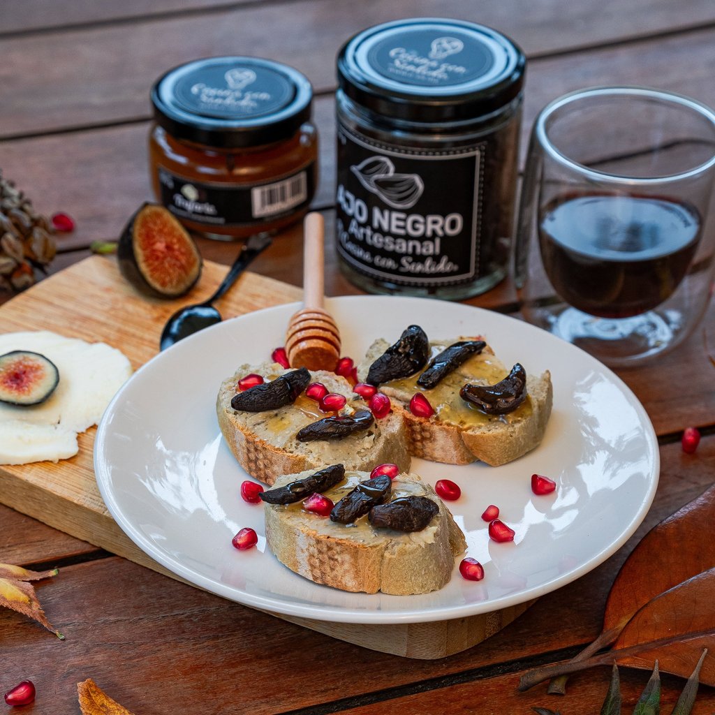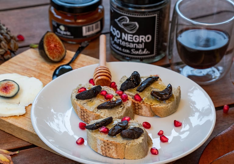 Tapa de Foie Gras Vegano, Ajo Negro y Miel Líquida